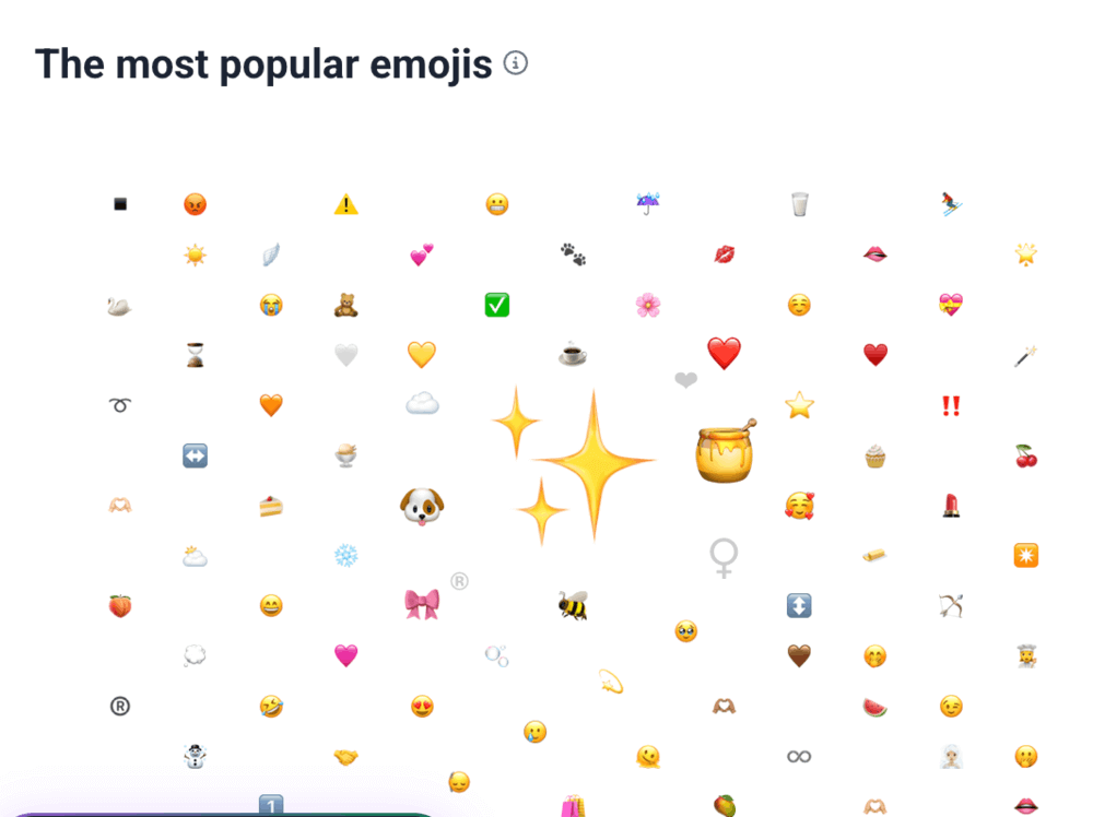 In Gisou’s case, the ✨ emoji appears hundreds of times and is typically a sign of admiration or excitement.