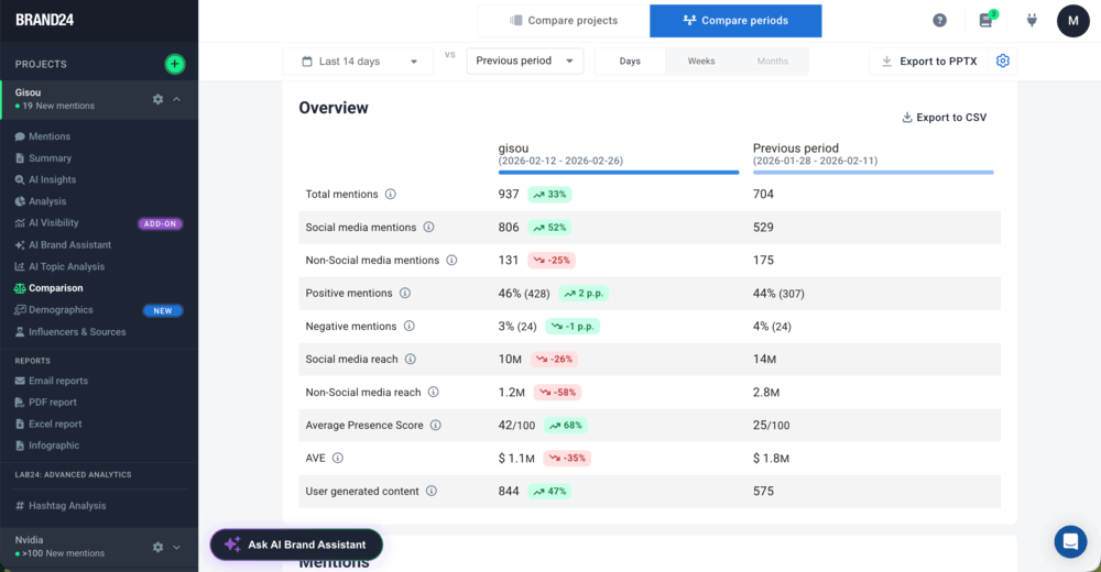 Instead of manually going through dozens of mentions, open Brand Assistant.