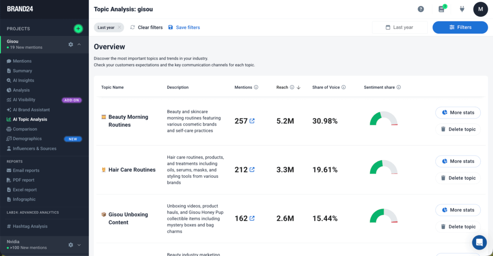 If another topic shows rising mentions combined with increasing negative sentiment, that’s usually where you should focus first, whether it’s a product issue, shipping delays, or a controversial video.