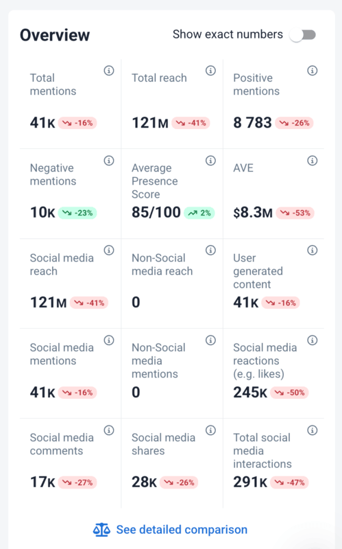 - Alcance en las redes socialesmuestra cuántas personas podrían haber visto el debate en torno a tu marca