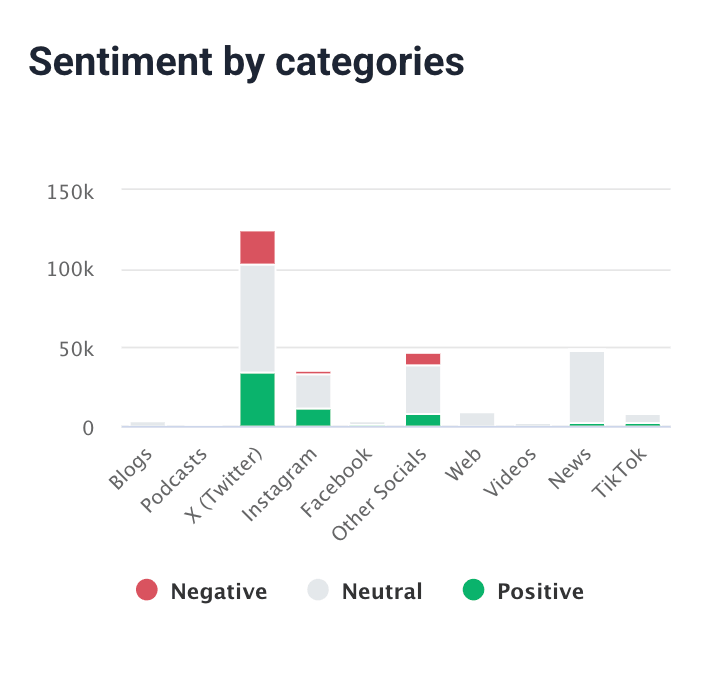 Este gráfico desglosa cuántos mention positivos vs neutros vs negativos que recibes de cada fuente o canal.