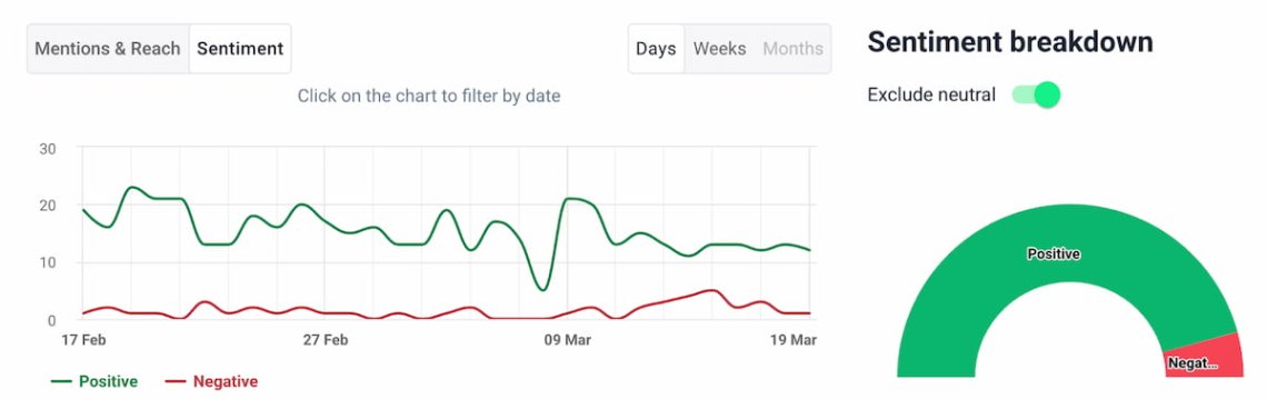 - You can see how positive, negative, and neutral mentions change over time and identify trends or anomalies.