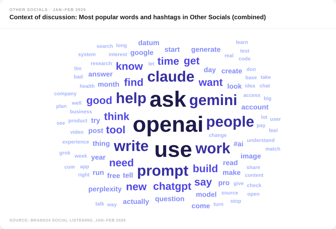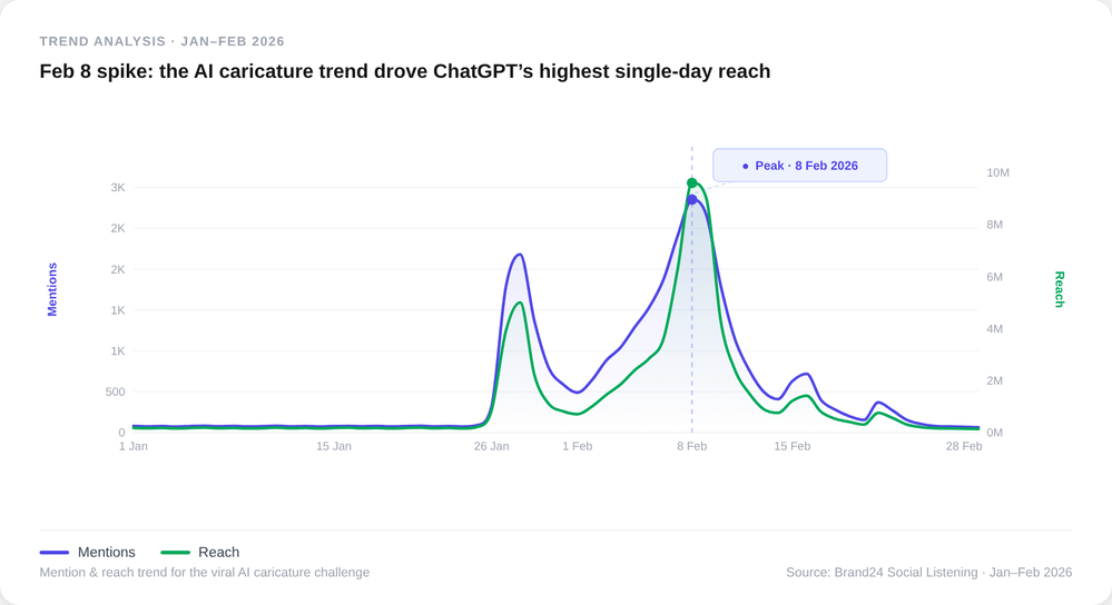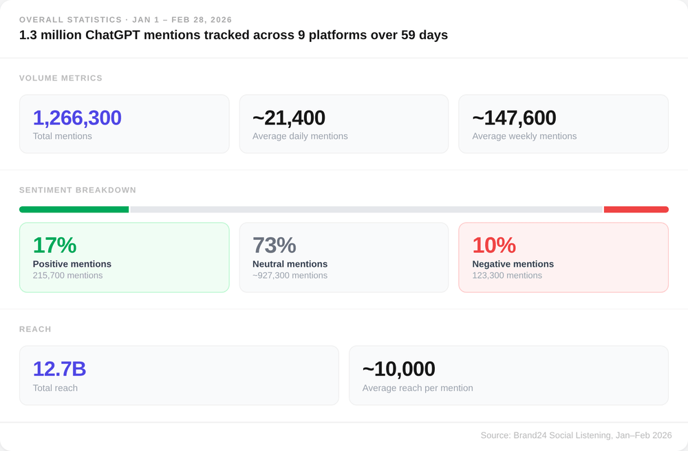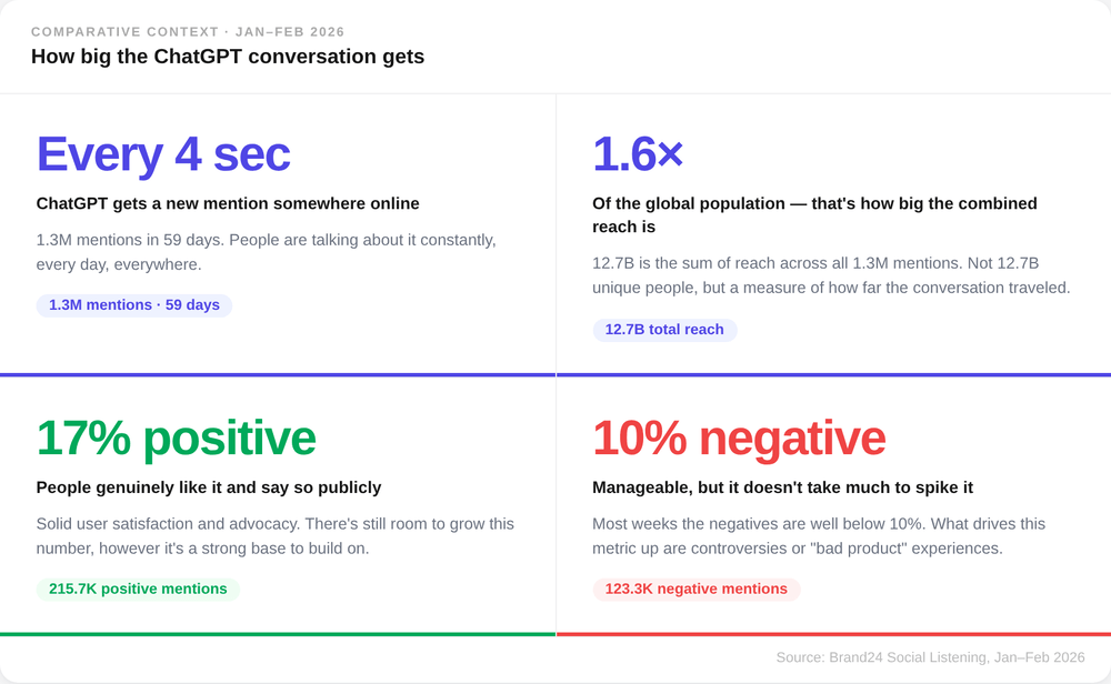 Rien qu'en janvier et février 2026, les internautes ont posté, partagé, argumenté et réagi à ChatGPT 1,3 million de fois.