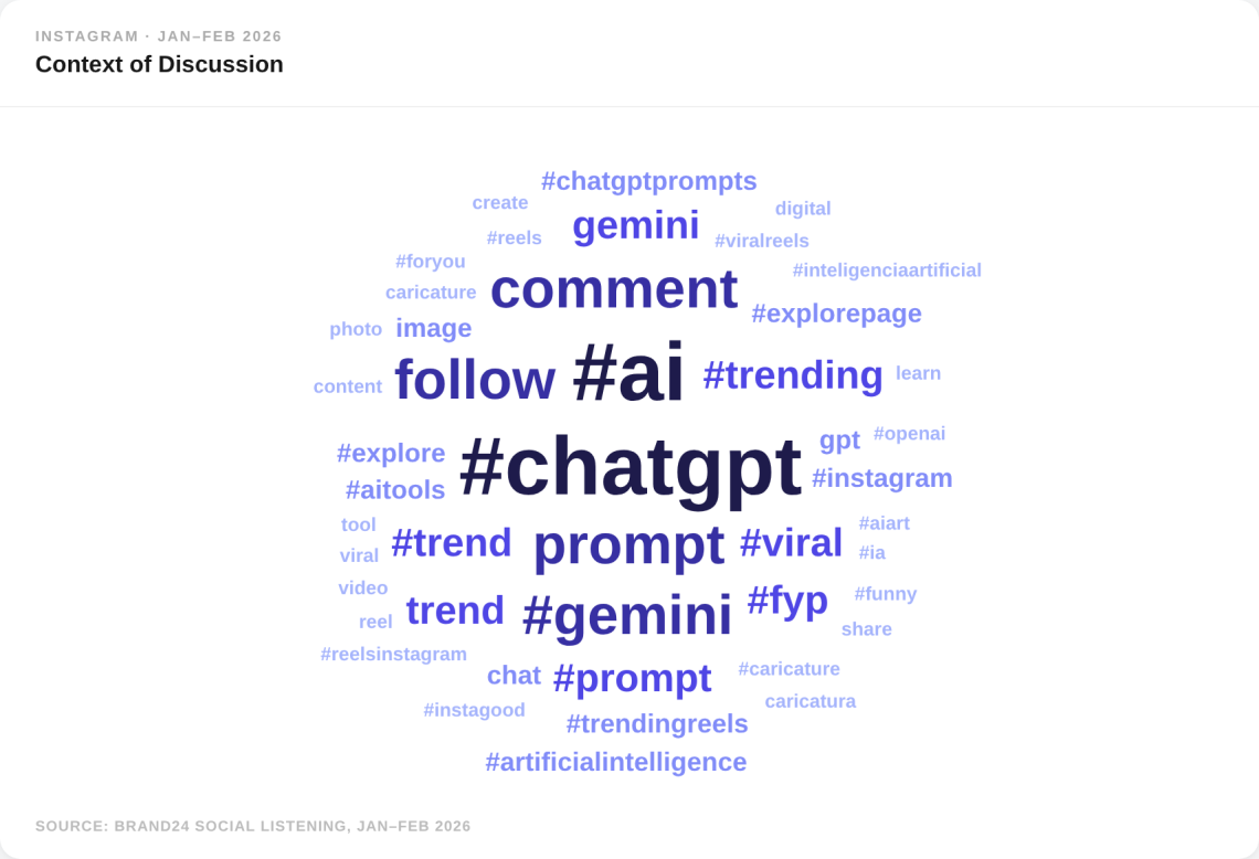 Les gens parlent de ChatGPT de manière très différente selon les canaux. Sur Instagram, il peut être question d'amusement et de créativité. Sur Twitter, il s'agit souvent d'un sujet brûlant de débat politique.