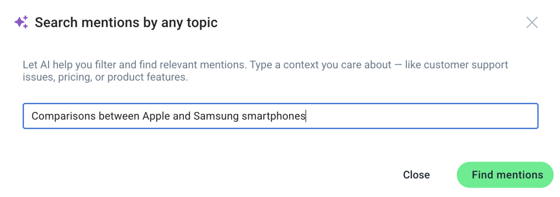 Sometimes speed matters more than anything. Imagine your brand sees a sudden spike in mentions. The cause could be a product launch, a viral ad, or a brewing issue. Without Context Search, you’d be scrolling through every mention to piece it together.