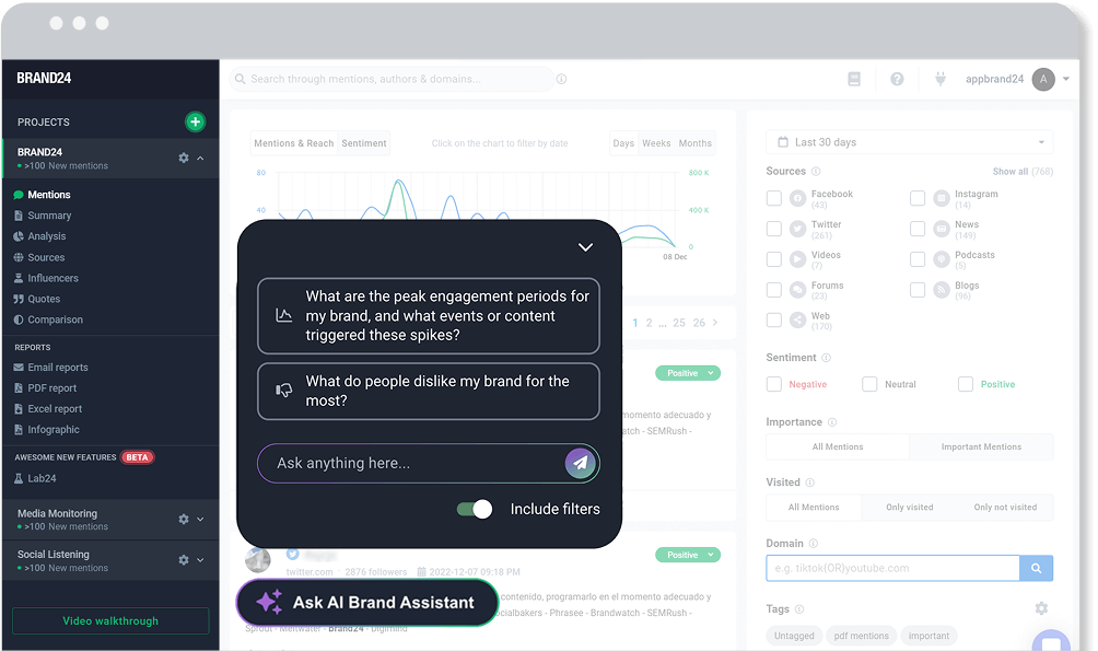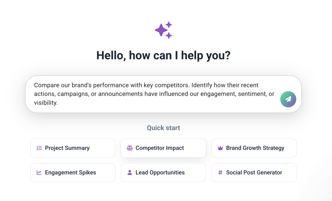 The Brand Assistant also got better at understanding what you’re looking at inside the tool. It now takes into account the filters you’ve applied in the Mentions, Analysis, and Comparison tabs.