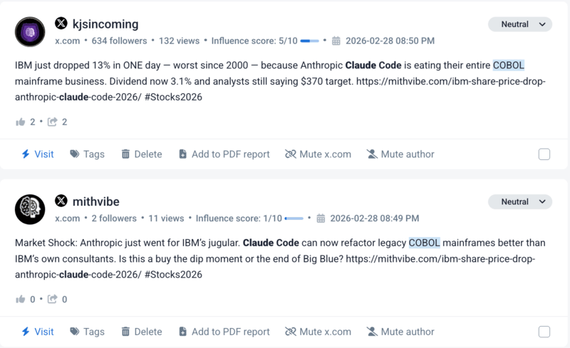 - 3 Then the American business news channel, CNBC, showed a material on IBM’s stock falling, and tied it directly to Claude’s COBOL capabilities.