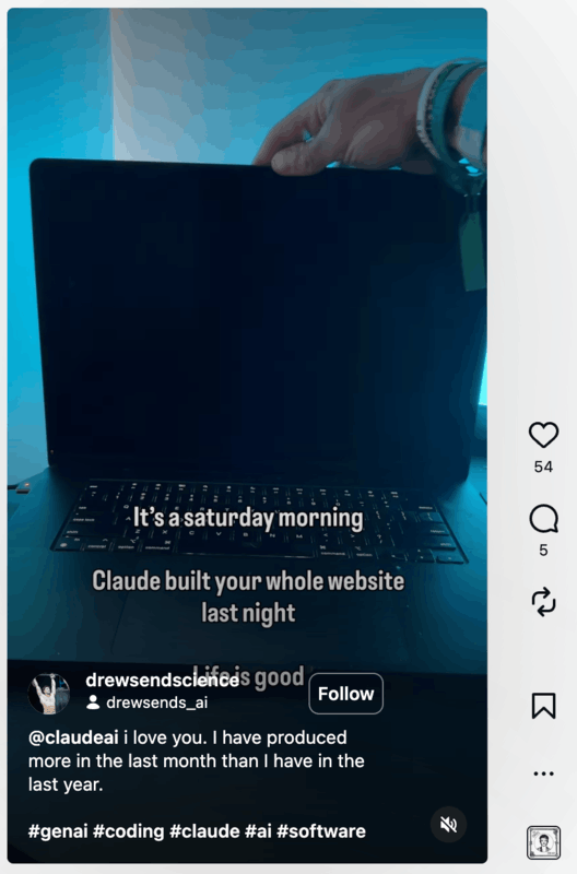 The most positive reactions in the dataset didn’t come from any Anthropic announcements. It was the people-developers showing off the apps and workflows they built with Claude Code and Claude Cowork.