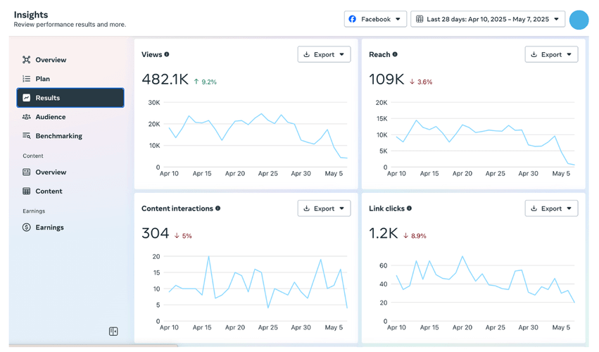 Keep an eye on your follower count, reach, and engagement over time. Make sure to act when something unusual happens.