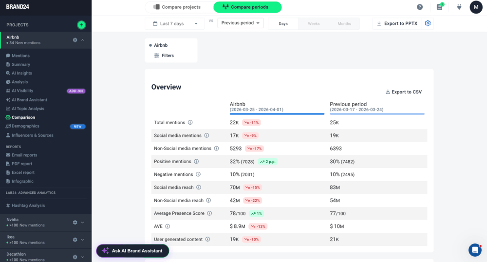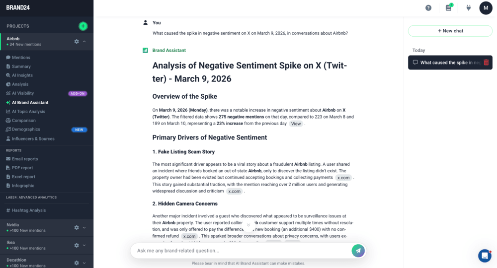 Você também pode perguntar ao Assistente de marca com IA para explicar qual evento, tendência ou problema exato causou o pico.