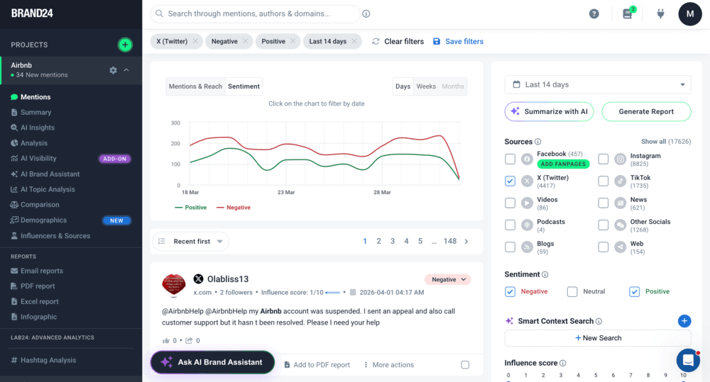 Você pode analisar rapidamente as postagens no X com um Ferramenta de monitoramento do Twitter. Ele pode identificar automaticamente postagens positivas e negativas e exibir os resultados do sentimento em um formato claro e fácil de ler.