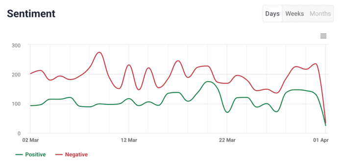 Um único número (por exemplo, 20% sentimento negativo nos últimos 30 dias) não lhe diz muito por si só. Você precisa de um ponto de referência para decidir se é bom, ruim ou normal.