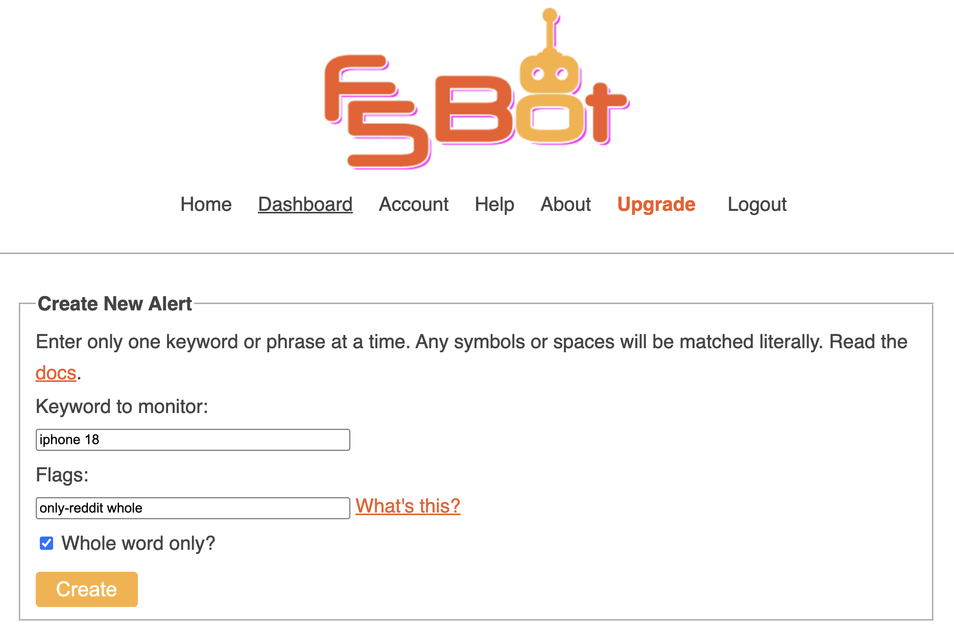 - Criar uma conta em f5bot.com.