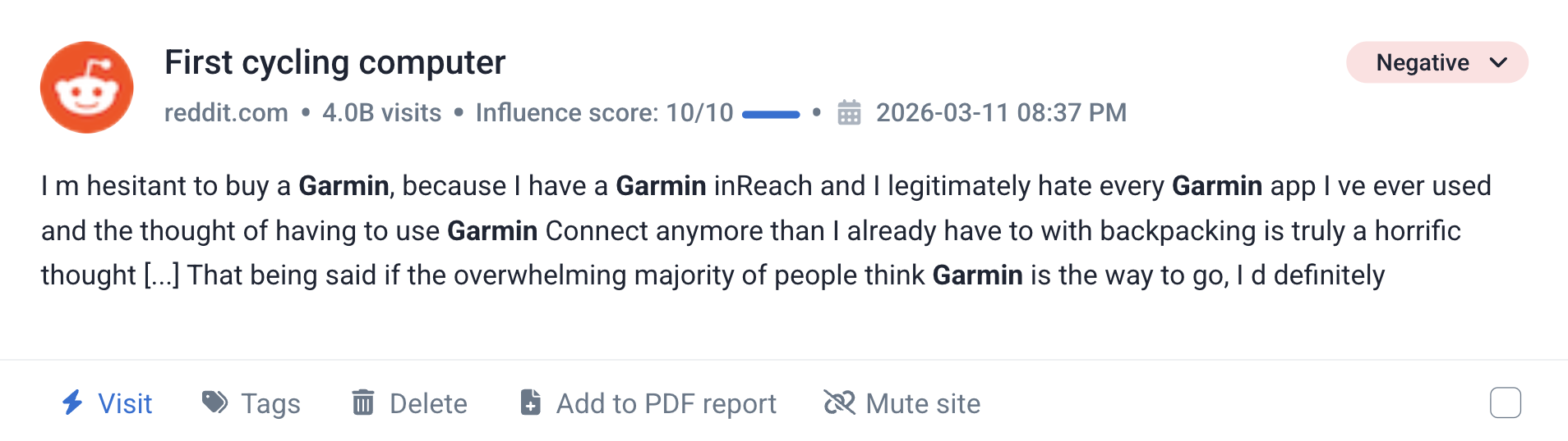 Reddit mention é uma situação em que um usuário inclui uma palavra-chave específica (como nome de marca, produto, pessoa, tópico etc.) em qualquer conteúdo publicado no Reddit. Os mentions Reddit podem ser marcados ou não marcados.