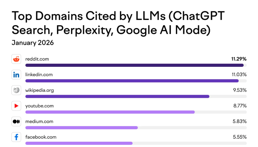 De acordo com a Semrush, Isso faz do Reddit o domínio mais citado na pesquisa de IA e em grandes modelos de linguagem (LLMs), como o ChatGPT ou o Google AI Mode.