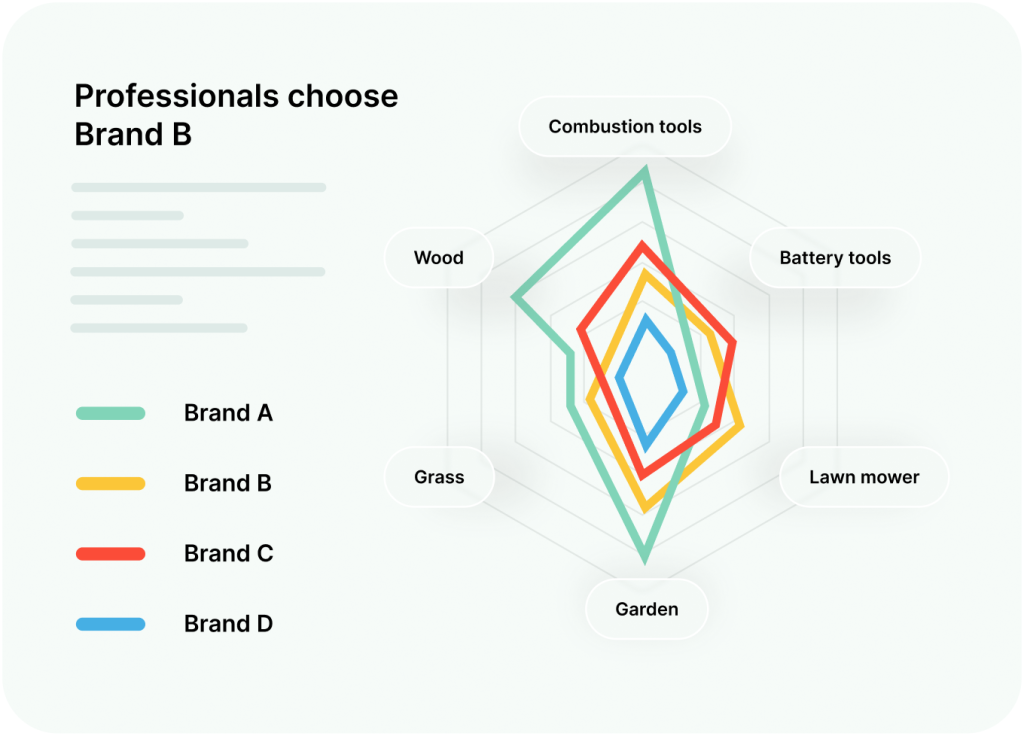 We analyze how brands are talked about, what they’re associated with, and which needs they fulfill in consumers’ minds.